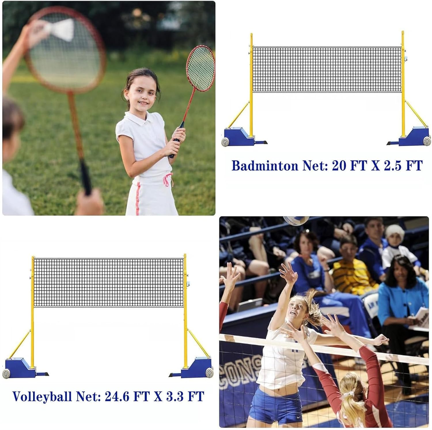 Experience the ultimate in versatility and convenience with our Adjustable Height Volleyball & Badminton Pole Set. Whether you're playing indoors or outdoors, this set is designed to meet all your needs.Specifications:Name: Badminton/Volleyball PoleMaterial: Steel Rod + PP NetTube Diameter: Outer Tube 45mm, Inner Tube 38mmAdjustable Height: 1.55-2.1m/4.9-6.9ftAir Volleyball Net: 7.5MBadminton Net: 6.1MBase After Filling: 70-80KGBox Size: 47X27X18cmNet Weight: 17KGApplicable: Indoor/OutdoorPackage Includes:2 x Adjustable Pole1 x Air Volleyball Net1 x Badminton Net1 x Installation Tool2 x BoxNote:Due to manual measurement, there may be a 2-3 cm error between the product size and the actual product.Due to different screen displays, the color may be slightly different, please refer to the actual product.This set is perfect for anyone looking to enjoy a fun and active game of volleyball or badminton, whether at home, school, or the beach. Get ready to elevate your game!