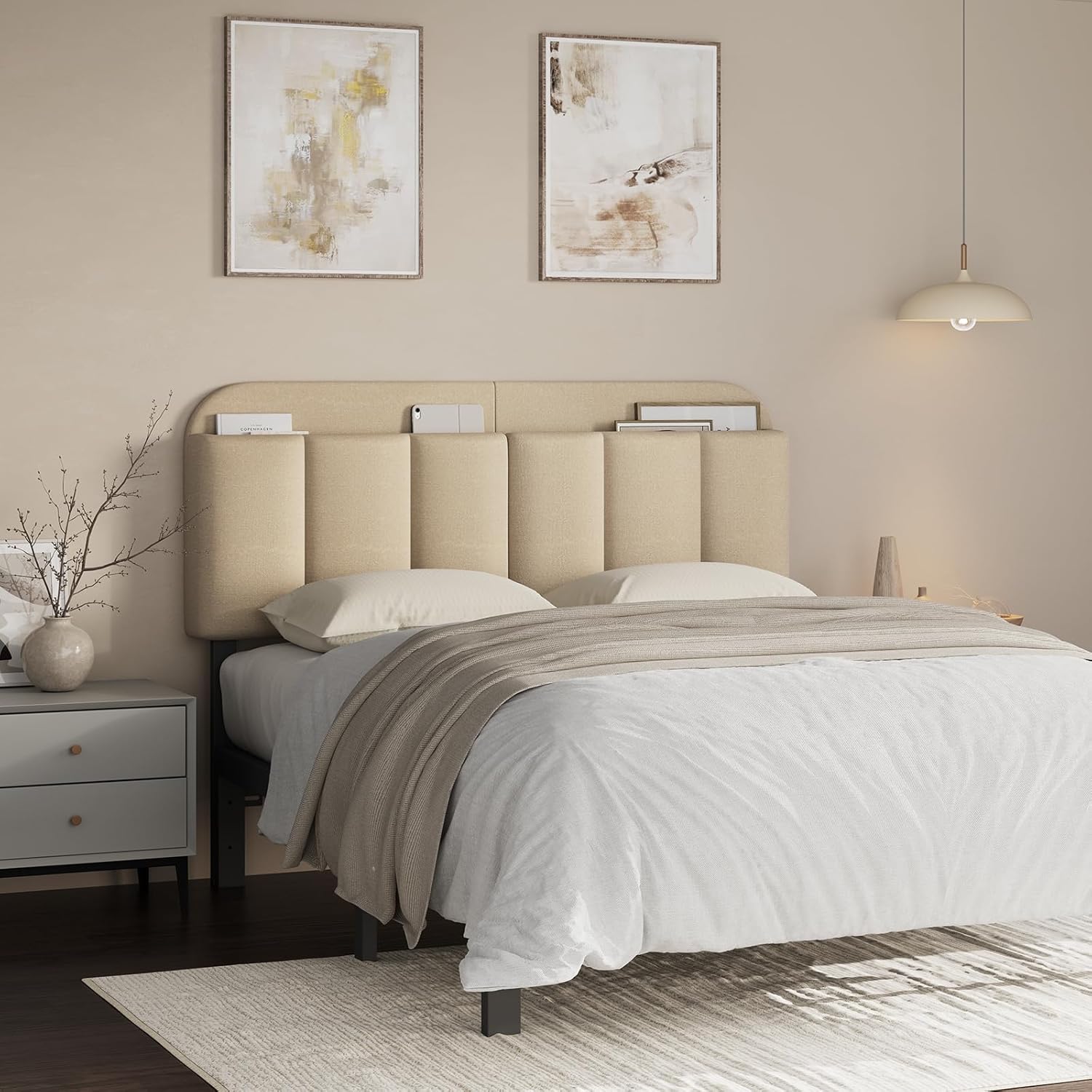 Transform your bedroom with the Lefurture headboard, a perfect blend of style and functionality designed for full or queen size beds. The sophisticated vertical channel design, wrapped in elegant light grey linen fabric, adds a touch of modern luxury to any bedroom decor. This innovative headboard comes equipped with built-in LED lighting, creating the perfect ambiance for late-night reading or a cozy atmosphere. The thoughtfully designed storage space helps keep your bedside essentials within arm's reach, reducing bedside clutter. Installation is a breeze with its user-friendly assembly process, and the noise-free construction ensures peaceful nights. The adjustable height feature allows you to customize the headboard to your preferred position, accommodating various bed heights and mattress thicknesses. The durable construction and quality materials make this headboard a lasting addition to your bedroom furniture collection.