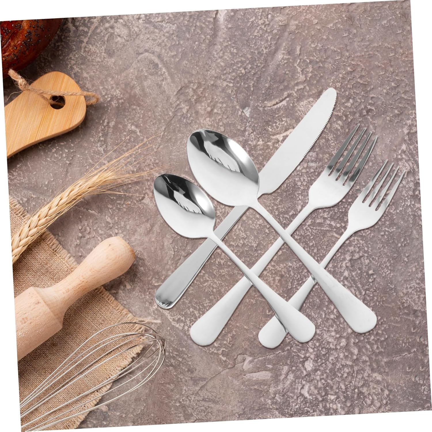 Package List 1 x set of stainless steel tableware Characteristics -Color:Silver western kitchenware -Artistic design: features an artistic design with fluid lines and elegant forms, making your dining experience more refined forks cutlery -Comprehensive set: includes steak knives, forks, spoons, and tea spoons, ensuring all your dining needs are met camping utensils set -Material:Stainless Steel kitchen forks and spoons set -Wide application: for family dinners, hotel restaurants, cafes, and various other settings, catering to different dining requirements travel utensil set -Userfriendly: designed for convenience with a comfortable grip, making it easy to handle during meals kitchen utensils set -Sophisticated look: the clean and sophisticated design matches well with any tableware, elevating the overall look of your dining table and enhancing your dining pleasure kitchen accessories -Size:23.00X2.00X0.30cm/9.04X0.79X0.12in restaurant flatwareGoods Informationwestern kitchenware The versatility of this flatware set makes it suitable for various dining scenarios.camping utensils set The included steak knives are for cutting through meats with ease, while the spoons and forks are ideal for enjoying a variety of dishes.kitchen forks and spoons set From formal dinners to casual gatherings, the set's elegant design complements any table decor