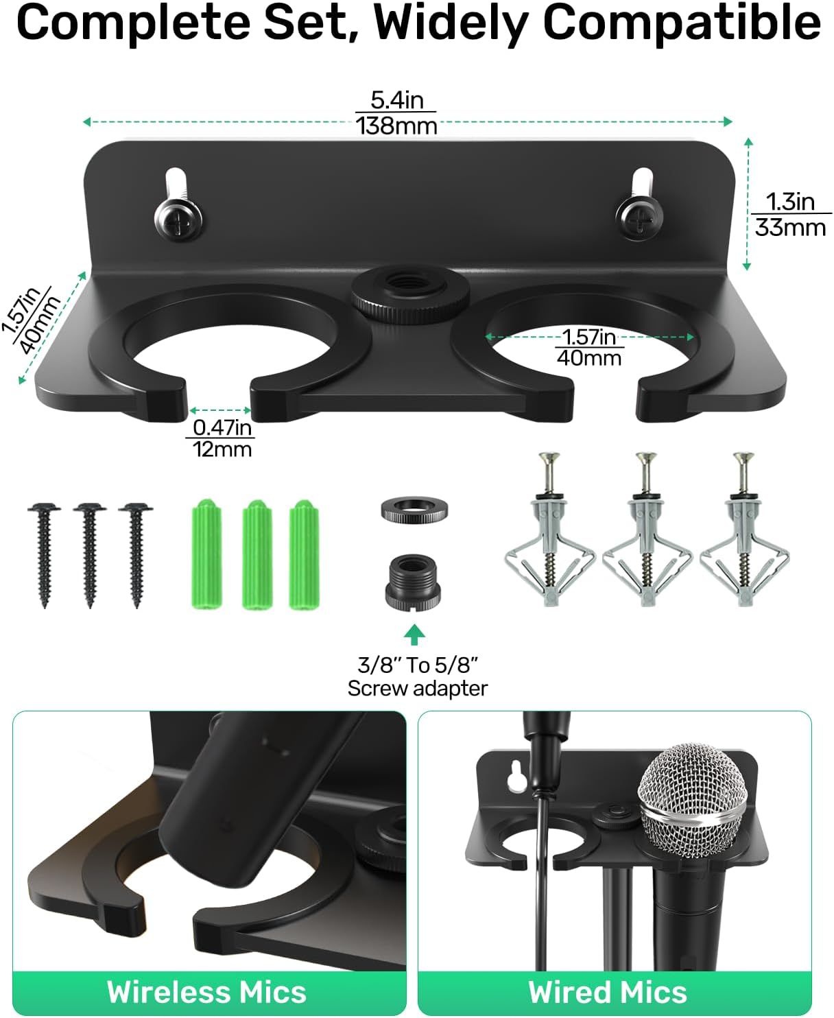 • 【Quick Setup & Ready to Use】Everything you need is included: dual-slot microphone holder, desktop stand, thread adapters, cable ties, and wall-mount screws. Installation is simple—choose your preferred mode, align the holes, and secure with the provided hardware. Set up in minutes and start using immediately. The desktop stand can also be quickly disassembled for easy transport between locations.