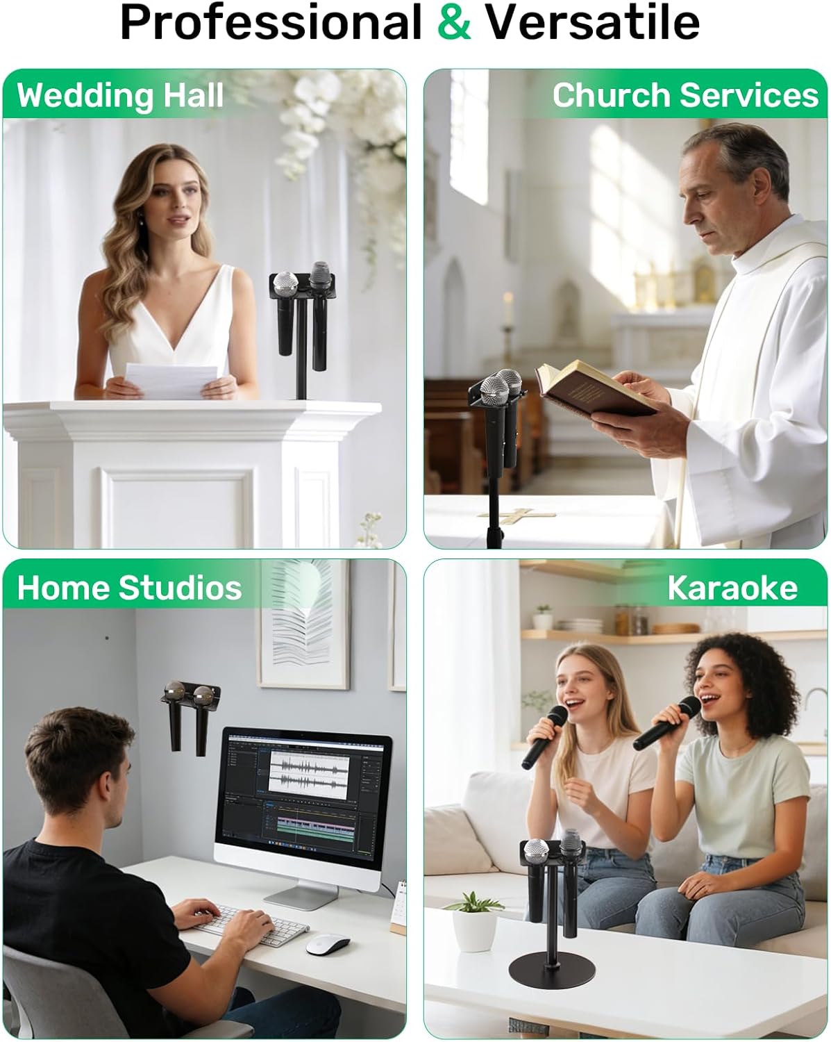 • 【Built for Creators & Performers】Whether you’re live streaming, recording, leading worship, DJing, or enjoying karaoke, this set offers a reliable, tidy, and efficient microphone management solution. Its space-saving design keeps your area clutter-free, while the sturdy construction and thoughtful padding keep your microphones safe, secure, and always within reach.