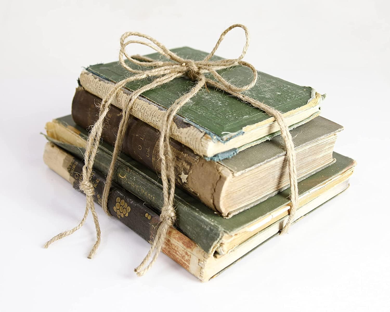 Add this set of decorative book accents to your home or business decor. These authentic distressed books are a great addition to events such as weddings, baby showers, or engagment parties. Books are hand-selected and arranged artistically to a specific color scheme and style.