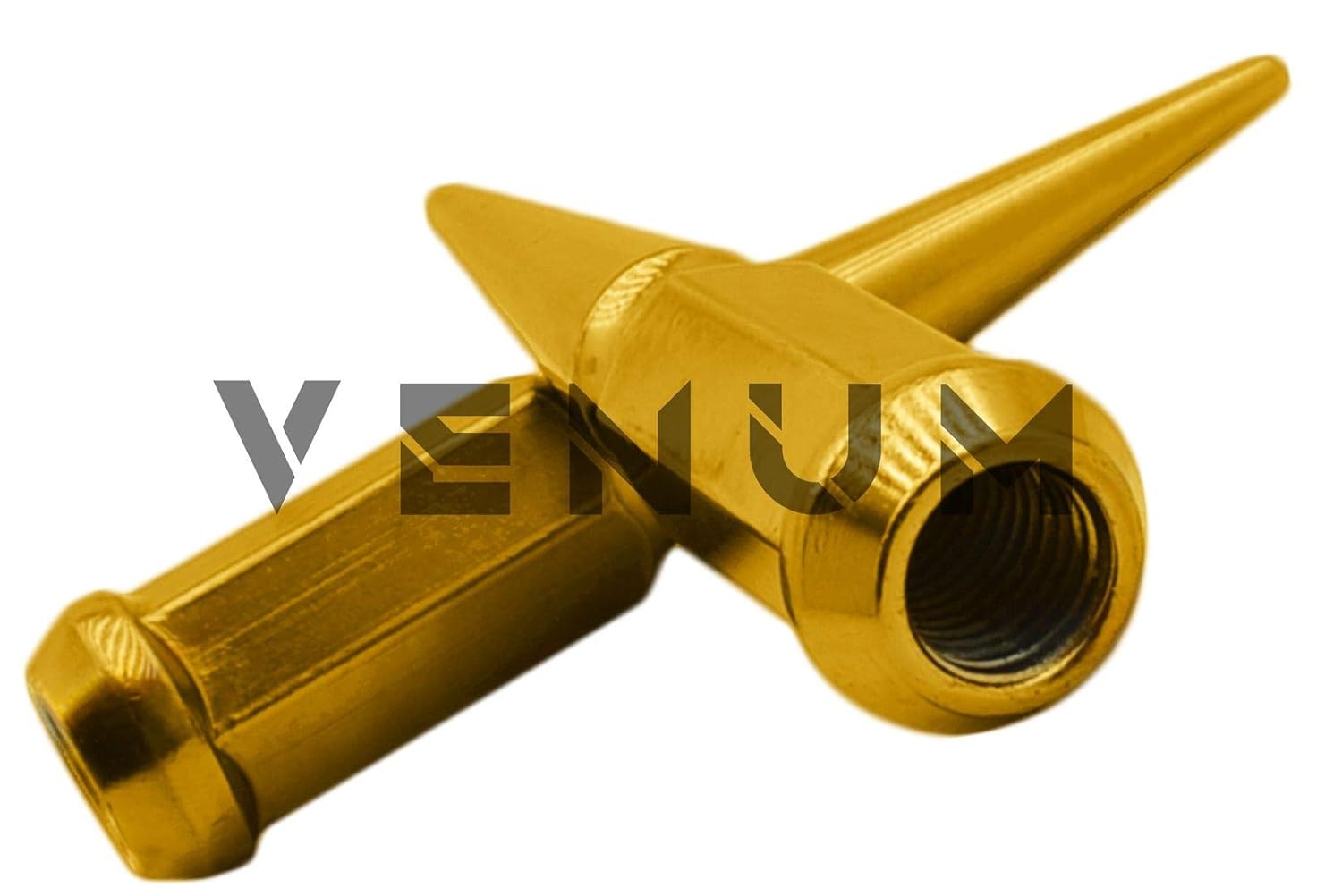 [ PRODUCT DESCRIPTION ] New 20 Pc Set of Candy Gold "SOLID SPIKE" Steel Lug Nuts. Fits all 14x1.5 vehicles with aftermarket wheels & conical seating. These lug nuts are not cheap ordinary lug nuts. Our lug nuts are powdercoated and made in house. We can customize any lug nut to any color. Spike Lug nuts are THE HOTTEST aftermarket lug nuts in the market. Made out of 10.9 Grade Steel, 1 Piece construction. These lug nuts require a special socket to install/remove them. At the same time it adds security to your wheels. Special key is included. [ COMPATIBLE WITH ] 2018-2020 JL Sahara 2015-2020 Mustang 2020 Gladiator 1988-1998 C-1500 Pickup 1997-2002 Express Van 1500 1995-2020 Suburban C 1500 1995-1999 Tahoe 2WD 2015-2019 Durango 2009-2020 Challenger 2007-2019 Charger 1992-1999 Yukon ( 5 Lug) 2011-2020 Grand Cherokee 2012-2018 RAM 1500 1999-2020 Range Rover 1998-2020 Land Cruiser 2008-2020 Sequoia 2007-2020 Tundra & More [ IMPORTANT NOTES ] - Must have Aftermarket wheels - Will not work with stock wheels unless it has a conical seating [ INSTALLATION NOTES ] - Installation should be tightened by hand. - Make sure to get at least 6-8 FULL TURNS of the lug nuts when tightening. - Be sure to hadn torque the lug nuts to you'r vehicles specifications - Check and re-torque all lug nuts after 25-50 miles of driving - (310) 763-0028