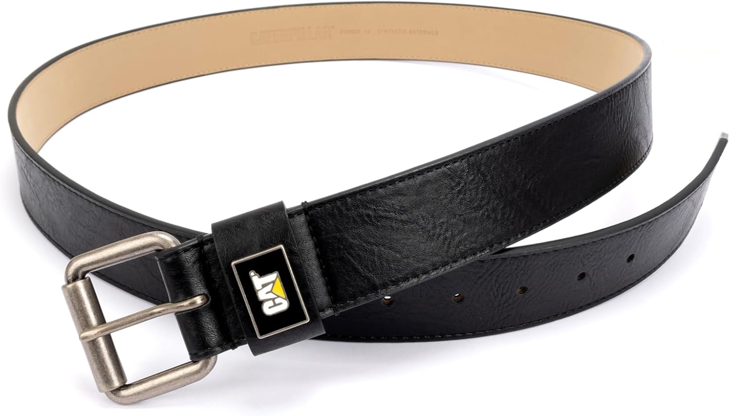 • =R7:V7MEN'S LEATHER BELT: The CAT R1338mm Enamel Plaque Belt for men features a bold CAT logo buckle. Perfect for work or play.