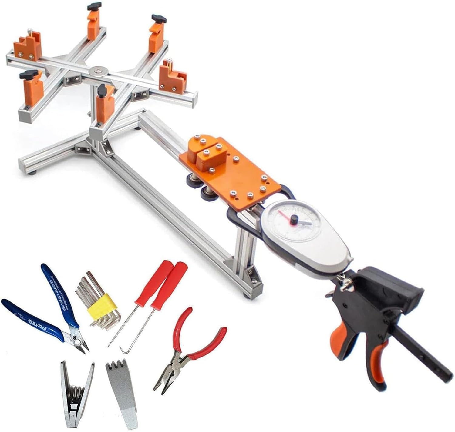FEATURES: 6-point fixed table to prevent deformation of the racket frame. With the use of the instrument, the digital display is intuitive and more accurate. Free and flexible control of pounds Complete accessories, easy to repair your badminton racket threadingLarge stroke and high strength, the pulling force exceeds 30LB. Specification: Name: Tennis stringing machine Net weight: 3.5kg Point size range: 20-32 pounds Suitable for: tennis, badminton ACCESSORIES INCLUDED: 1 X Racket Stringing Machine 1 X Needle-Nose Pliers 1 X Bolt Cutters 1 X Awl 1 X Retractor 2 X Aluminum Alloy Fly Clamp 1 X Allen Wrench