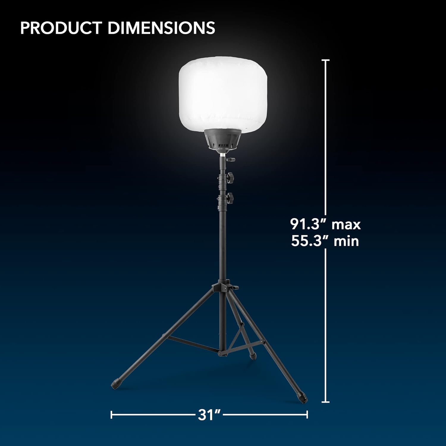 Brighten up your workspace or illuminate an evening event with the SKYFUZE 150W LED Balloon Light by E-Z UP. With its portable design and quality construction, it’s the go-to lighting solution for jobsites, events, camping, photo/video production, and more. 19,500 lumens bright with 360-degree illumination and 50,000 hours of run life make this light perfect for a wide range of work applications and evening events. Designed for professional or recreational use, the SKYFUZE LED Balloon Light provides powerful, glare-free light thanks to water-resistant Samsung LEDs enshrouded in a self-inflating nylon diffuser for enhanced protection and comfort. From construction sites to campsites and everything in between, the versatile SKYFUZE 150W LED Balloon Light delivers unmatched nighttime visibility and in a highly portable and convenient package.