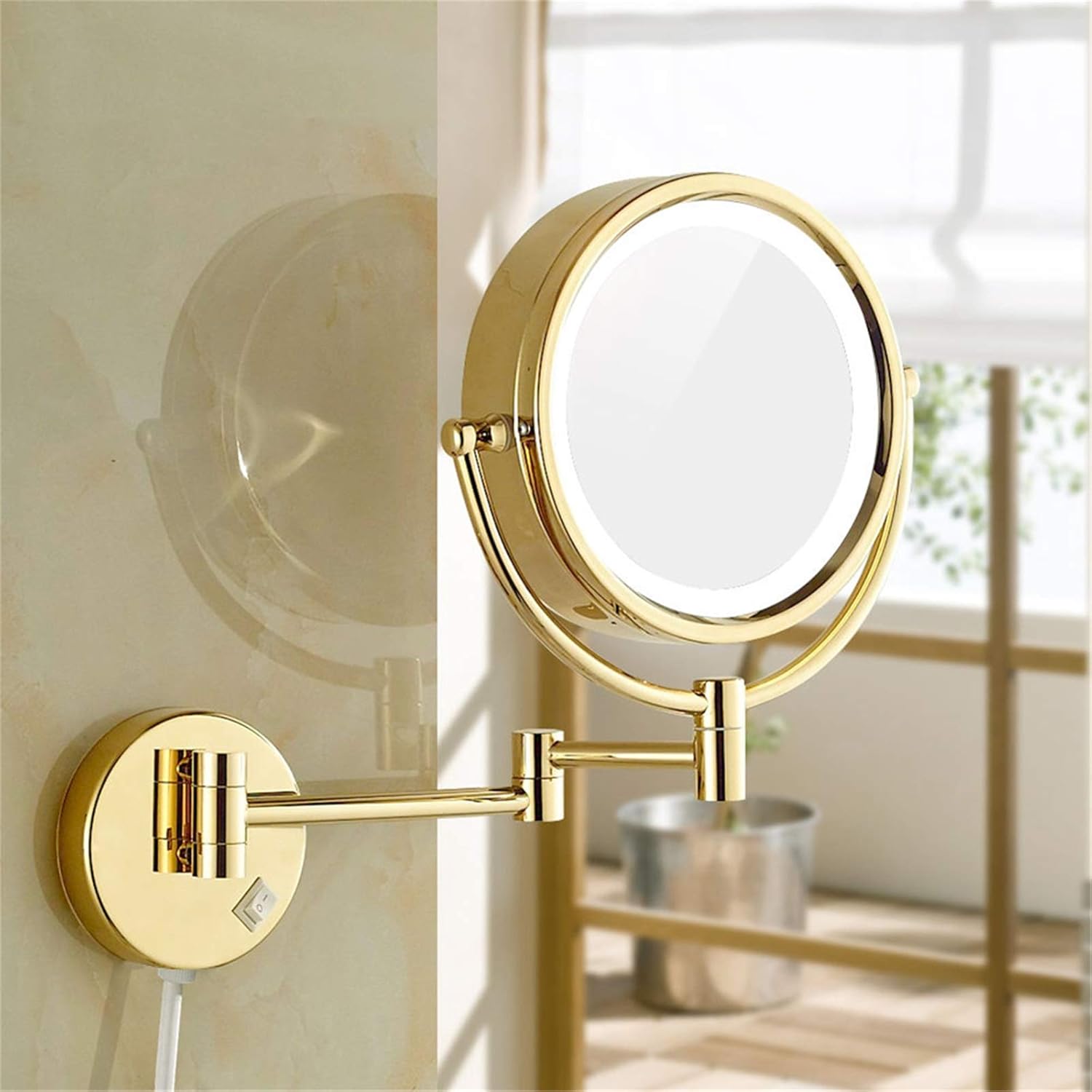 Makeup MirrorsItem Type: Makeup MirrorType: Led Wall Mounted Bath MirrorModel Number: M1809Color: GoldStyle: ModernFeature: Illuminated, 2A: Face, Magnifying, Dual Arm Extend360 Degree Rotated Mirror: Easy to Adjust the Angle You WantInput Voltage: 85~265VLight: YesMaterial: BrassDouble Sided: Magnifying and NormalMagnification Option: 3X, 5X, 7X, 10X for Your SelecationDouble Folding Arm: Upto 30Cm (12 Inches)Shape: roundSize: 30A:9.5A:39.5CmMirror Diameter: 8.5 Inch/21.5CmMirror Thickness: 2.4 Inch/6.1CmPower Cable Length: 5.9Ft/180CmArm Extension: up to 12Inch/30CmPowered By: PlugLed Quantity: 50PcsLight Luminance: 6,000KLed Life: 10,000 Hoursthe Distance between You and Mirrors is Better Not More Than:30Cm(3X); 20Cm(5X); 15Cm(7X); 10Cm(10X)