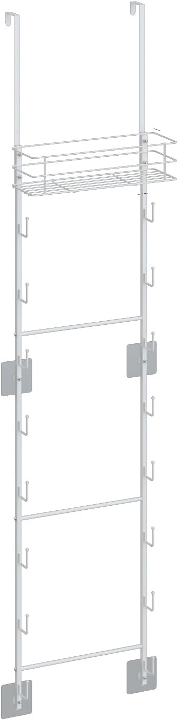Features: Space Saving Wall Mounted Design: This bag planner features a vertical layout that maximizes unused wall space, perfect for closets or small living areas. Keeps bags tidy and elevated, functioning well as an entryway display or bedroom storage piece. Sturdy Metal Construction: Built with robust metal to bending or breakage, solving problems often found with versions. Provides consistent use for those who value strength in their storage items. Top Storage Basket Utility: Comes with a metal wire basket to store everyday objects such as wallets, sunglasses, or keys ideal for bedrooms or hallways. This extra space helps reduce clutter while keeping commonly used items within reach. Multi Purpose Storage Function: Featuring 16 hooks and a metal basket, this rack holds handbags, scarves, belts, and hats. An adaptable wall mounted unit that maintains neatness in entryways, closets, or bedrooms. Modern Aesthetic: Its streamlined form blends practicality with visual appeal, enhancing home decor. Complements various interior styles for those who prefer coordinated looks. Specifications: Substance: metal Size: 143x30cm selling characteristics: Various colors, optional black and white Practicality: Large capacity design, can store multiple handbags, save space and keep chamber tidy Usage scenario: Suitable for home , especially for use behind entrances of bedrooms and cloakrooms Note: Easy installation, denial tools required, suitable for door panels of various thicknesses Note: Pay attention to the storage methods. Package includes: Door-back handbag storage rack